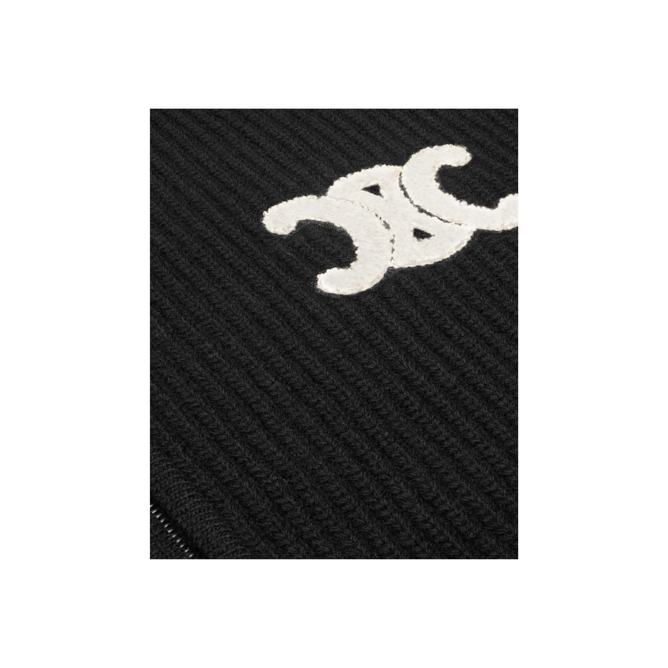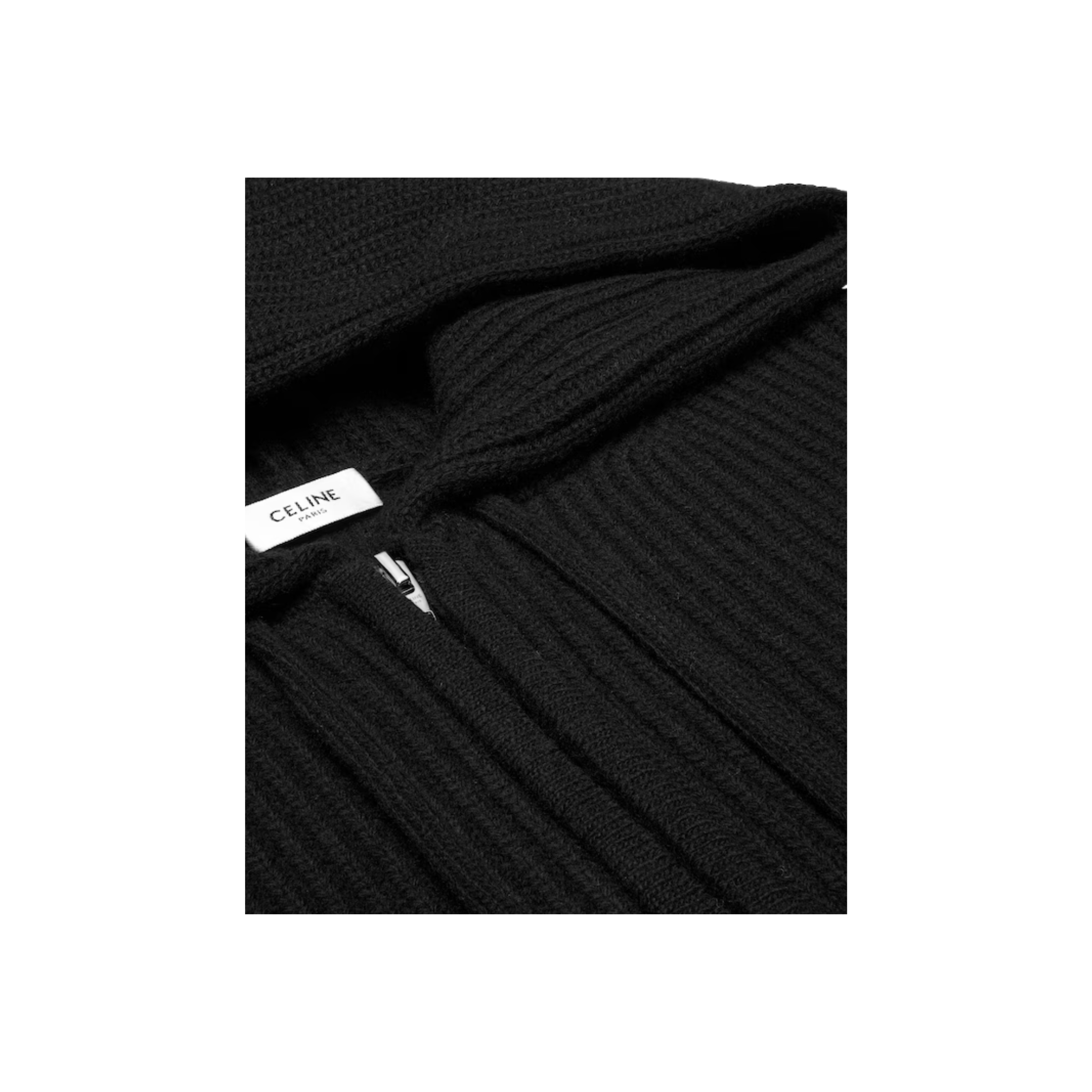 Black Hooded CC Zip Cardigan in Ribbed Wool.