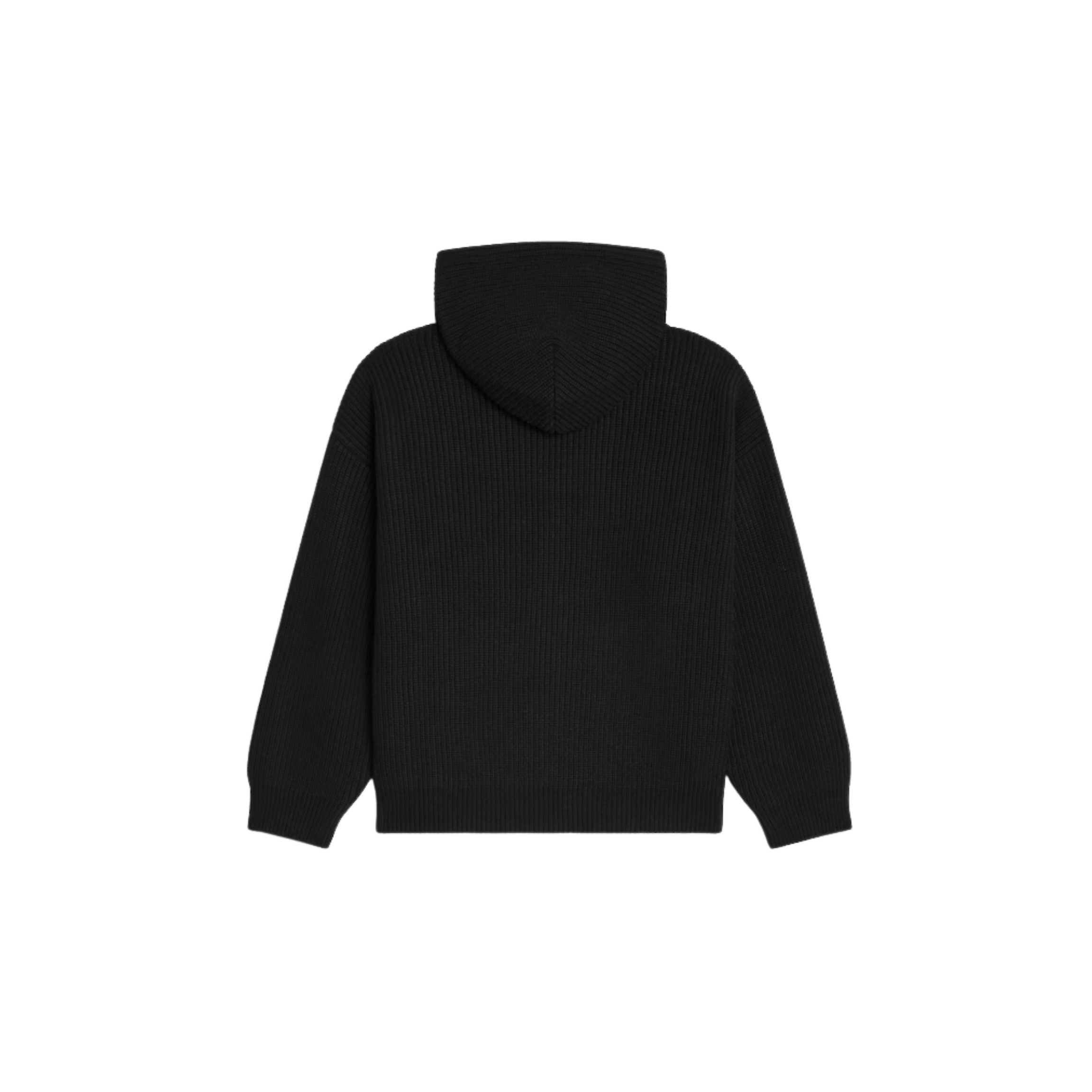 Slightly oversized. Black Hooded CC Zip Cardigan in Ribbed Wool.